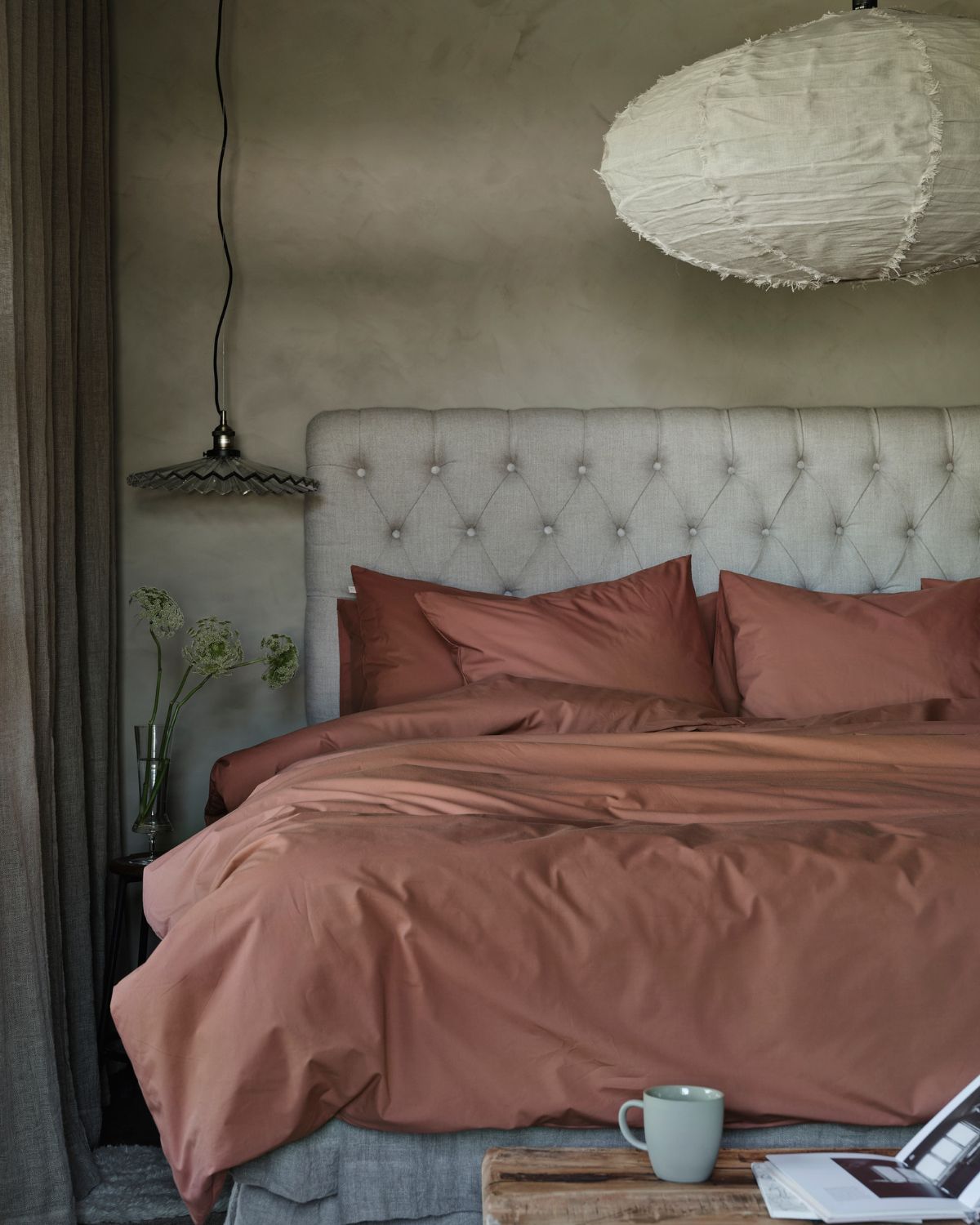 100% ekologisk, percalevÀvd bomull. Ger en krispigt sval och luftig kÀnsla mot huden. GOTS & Oeko-TexŸ Standard 100, klass 1