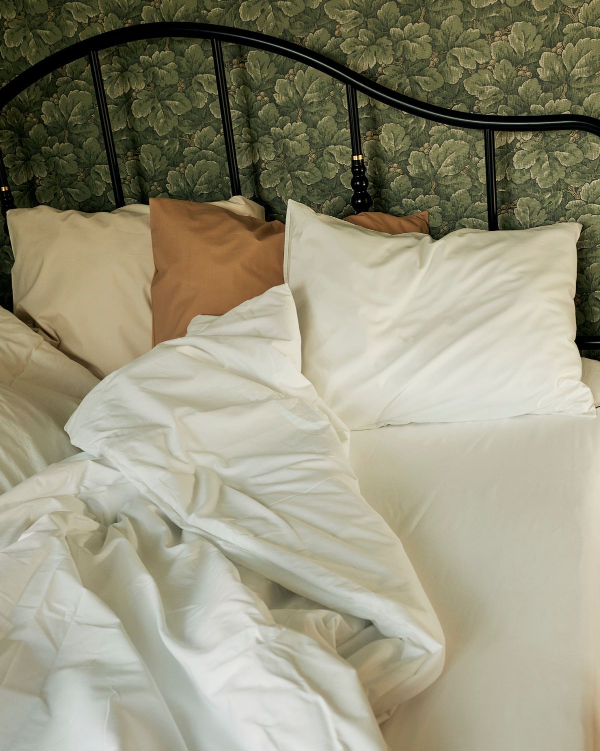 100% ekologisk, percalevÀvd bomull. Ger en krispigt sval och luftig kÀnsla mot huden. GOTS & Oeko-TexŸ Standard 100, klass 1