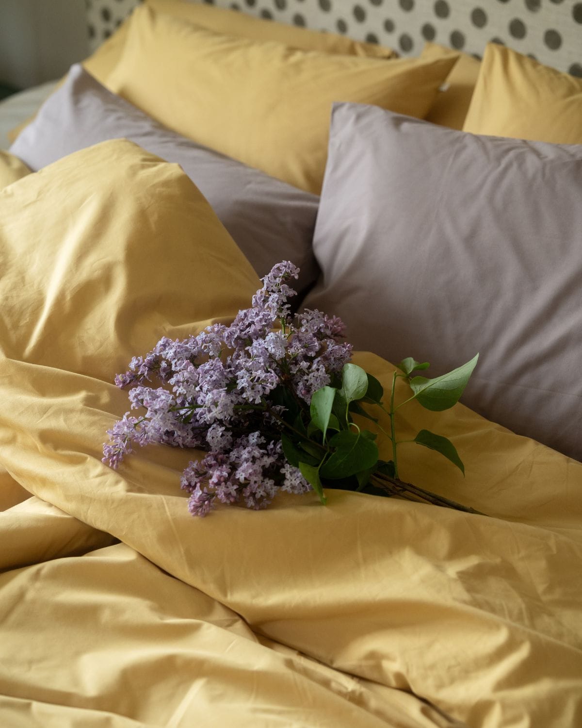 100% ekologisk, percalevÀvd bomull. Ger en krispigt sval och luftig kÀnsla mot huden. GOTS & Oeko-TexŸ Standard 100, klass 1
