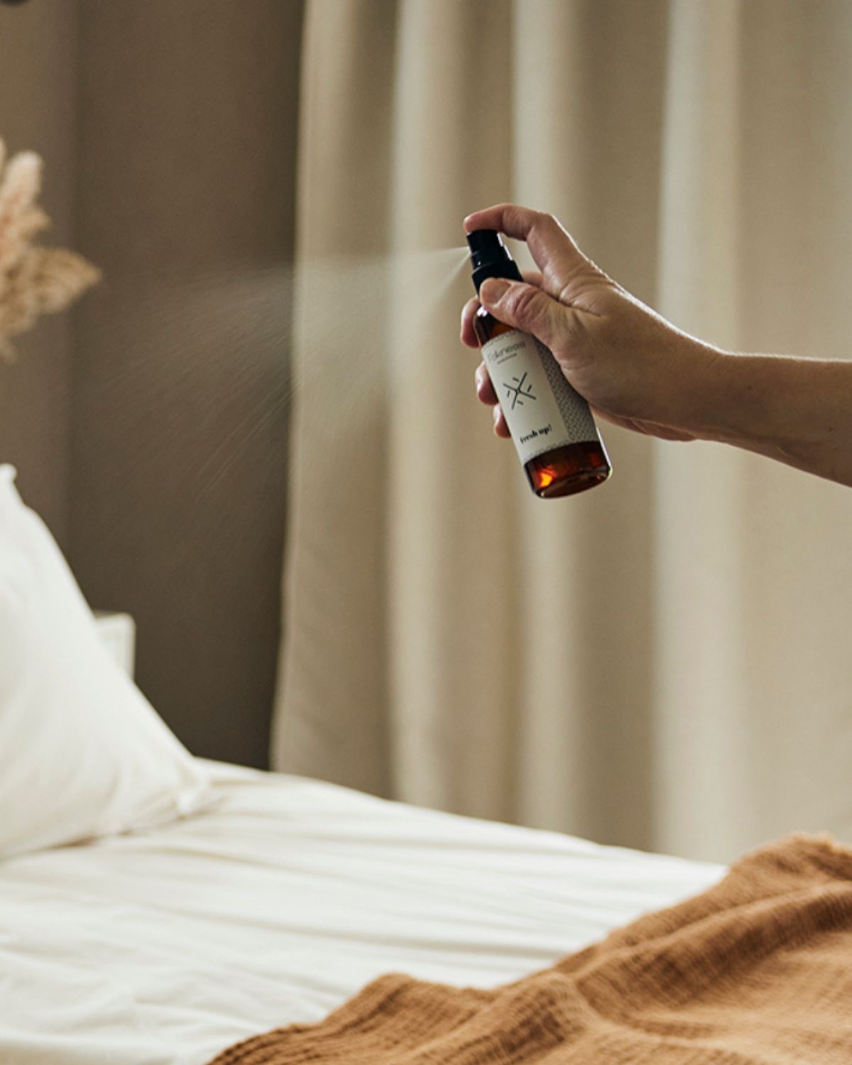 Destillerat vatten, alkohol, ekologiska eteriska oljor och ftalatfri doftolja.