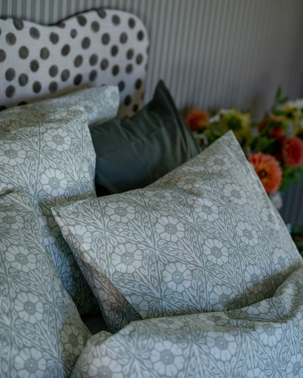 100% ekologisk, percalevÀvd bomull. Ger en krispigt sval och luftig kÀnsla mot huden. GOTS & Oeko-TexŸ Standard 100, klass 1
